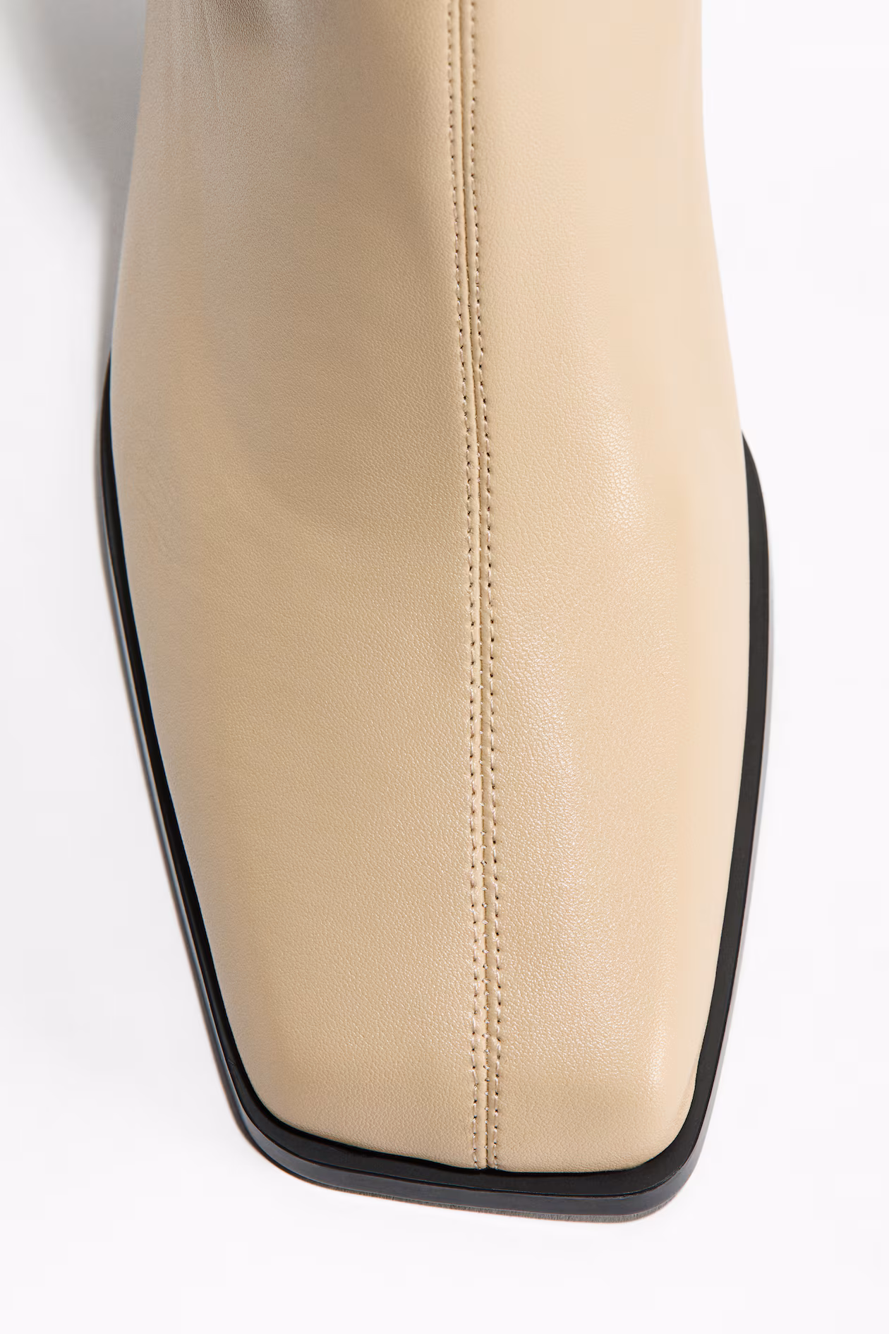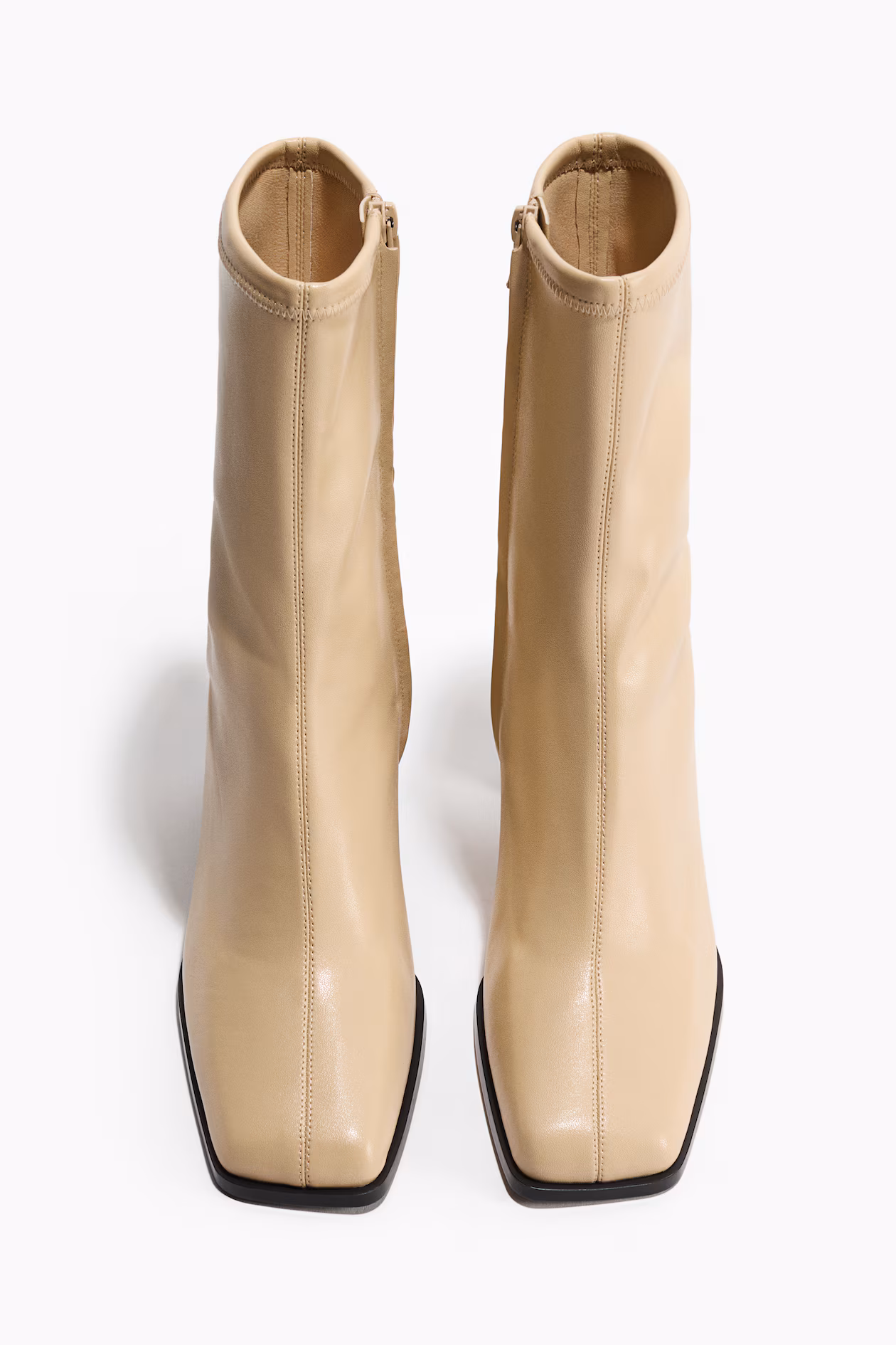 Ankle boots in coated fabric with a visible vertical seam at front. Square toes, concealed zipper at one side, and covered block heels. Lining and insoles in jersey.