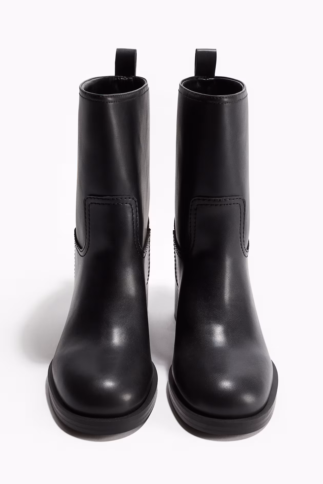 Block-heeled ankle boots with rounded toes and a loop at back. Lining and insoles in jersey.
