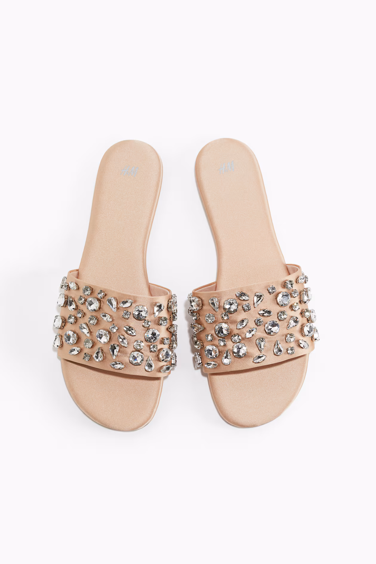 Sandals in woven fabric. Rounded toes and a wide, embellished foot strap. Jersey lining.