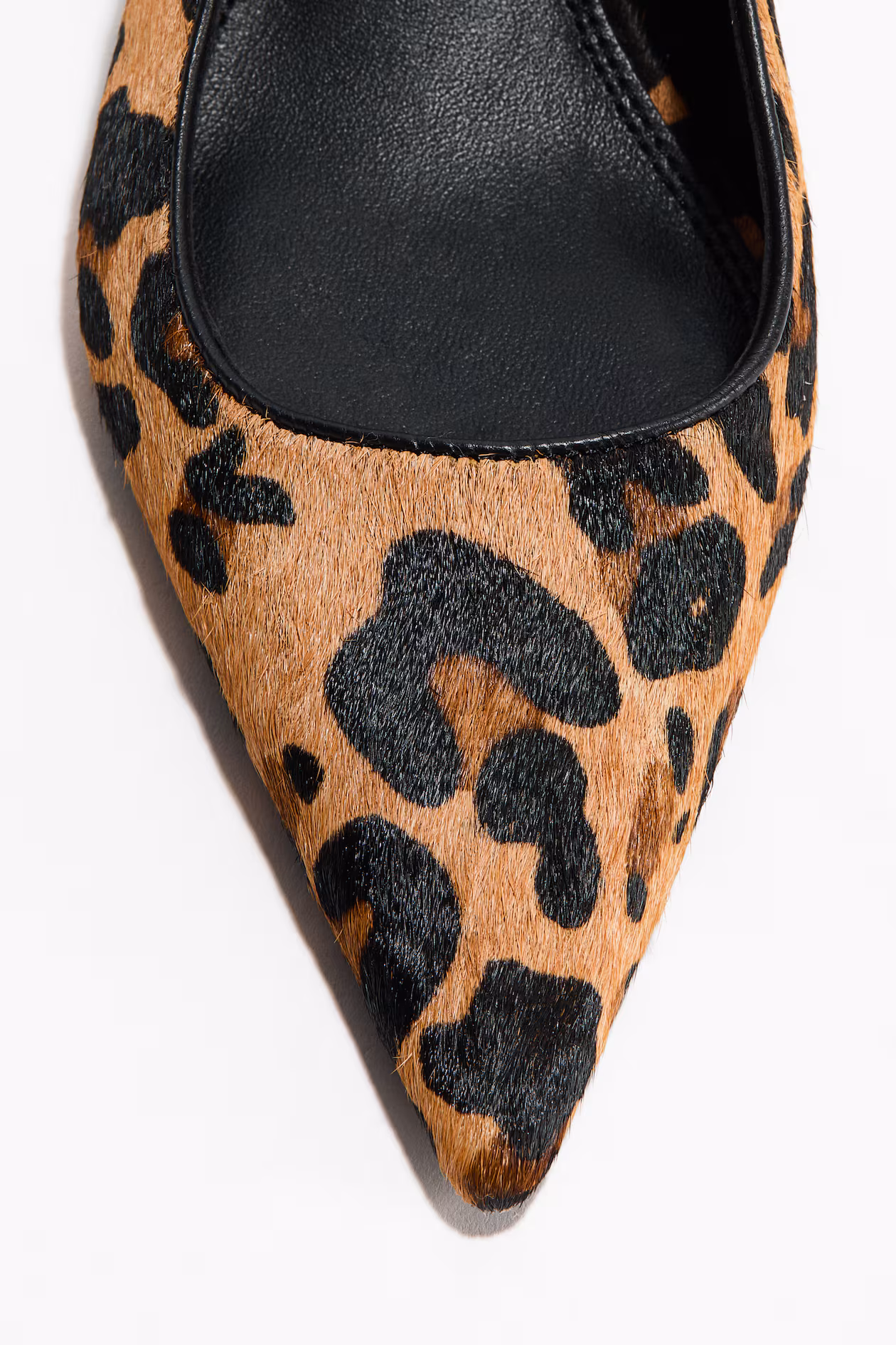 Slingbacks in leather with a textured, napped finish. Pointed toes, a narrow heel strap with elastic at one side, and partly covered kitten heels. Lining and insoles in leather.