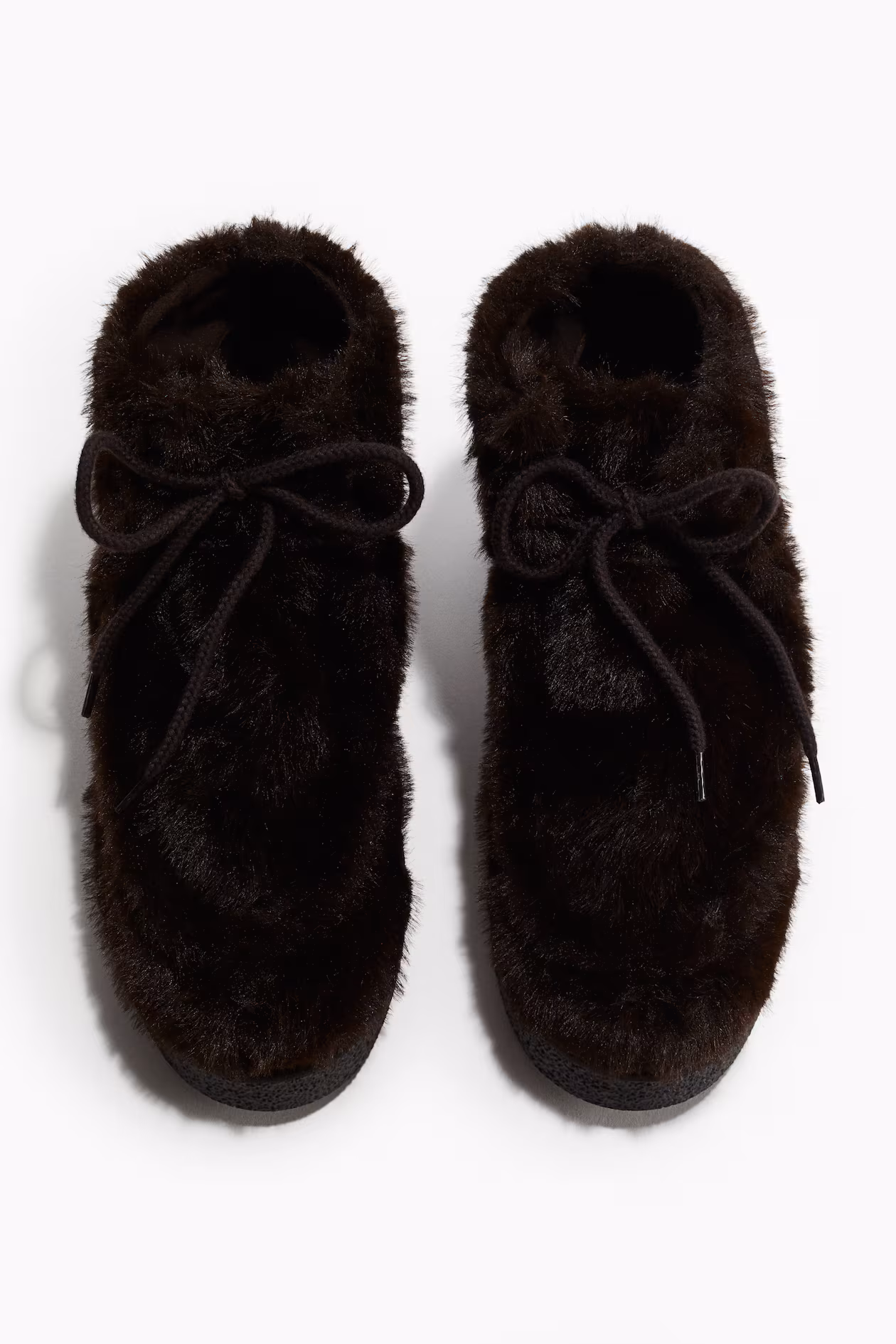 Boots in soft, fluffy fabric. Lacing and a moccasin seam at front, block heels, and chunky soles. Lining and insoles in terry.