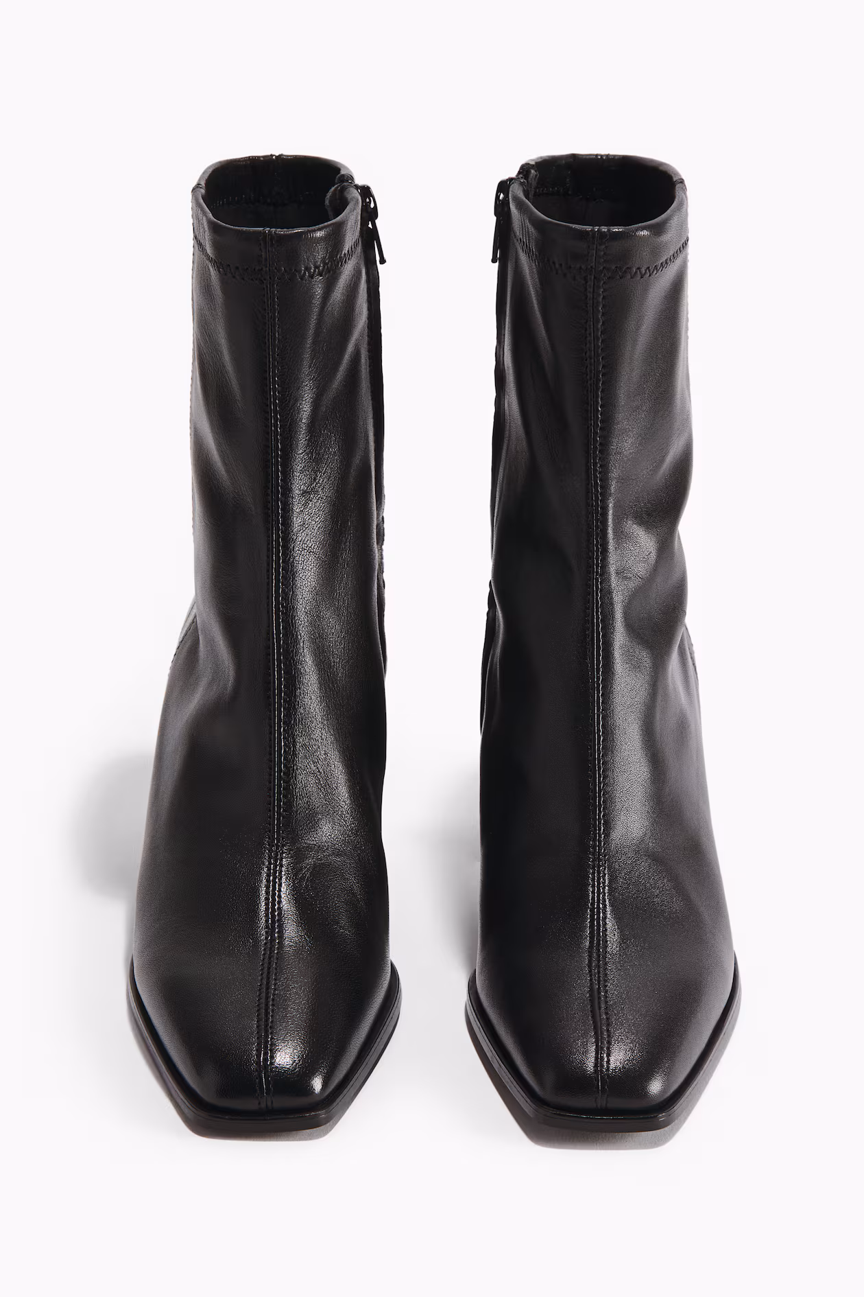 Ankle boots in soft leather with square toes, concealed zipper at one side, and block heels. Lining and insoles in jersey.