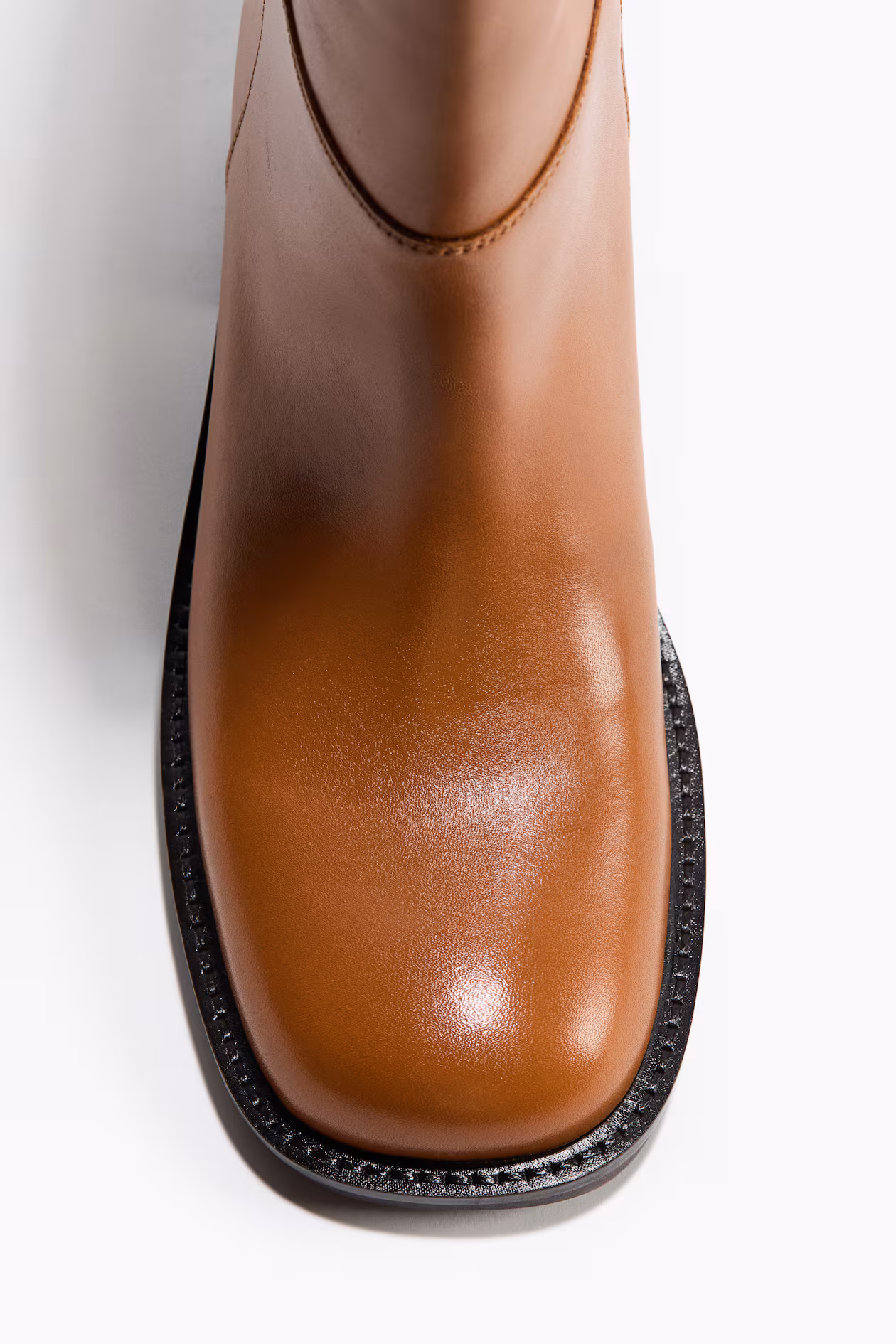 Knee-high boots in slightly distressed-look leather. Square toes, block heels, and leg sections with visible seams. Leather and jersey lining and leather insoles.