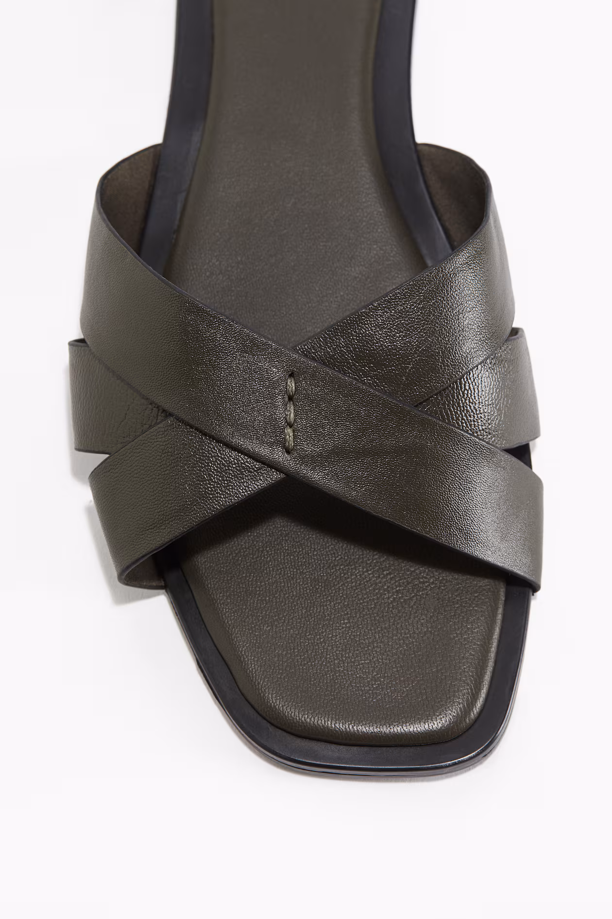 Flat sandals in soft leather. Square toes, crossover foot straps, and leather insoles.