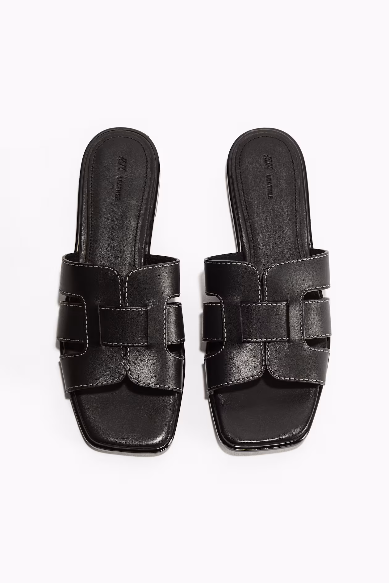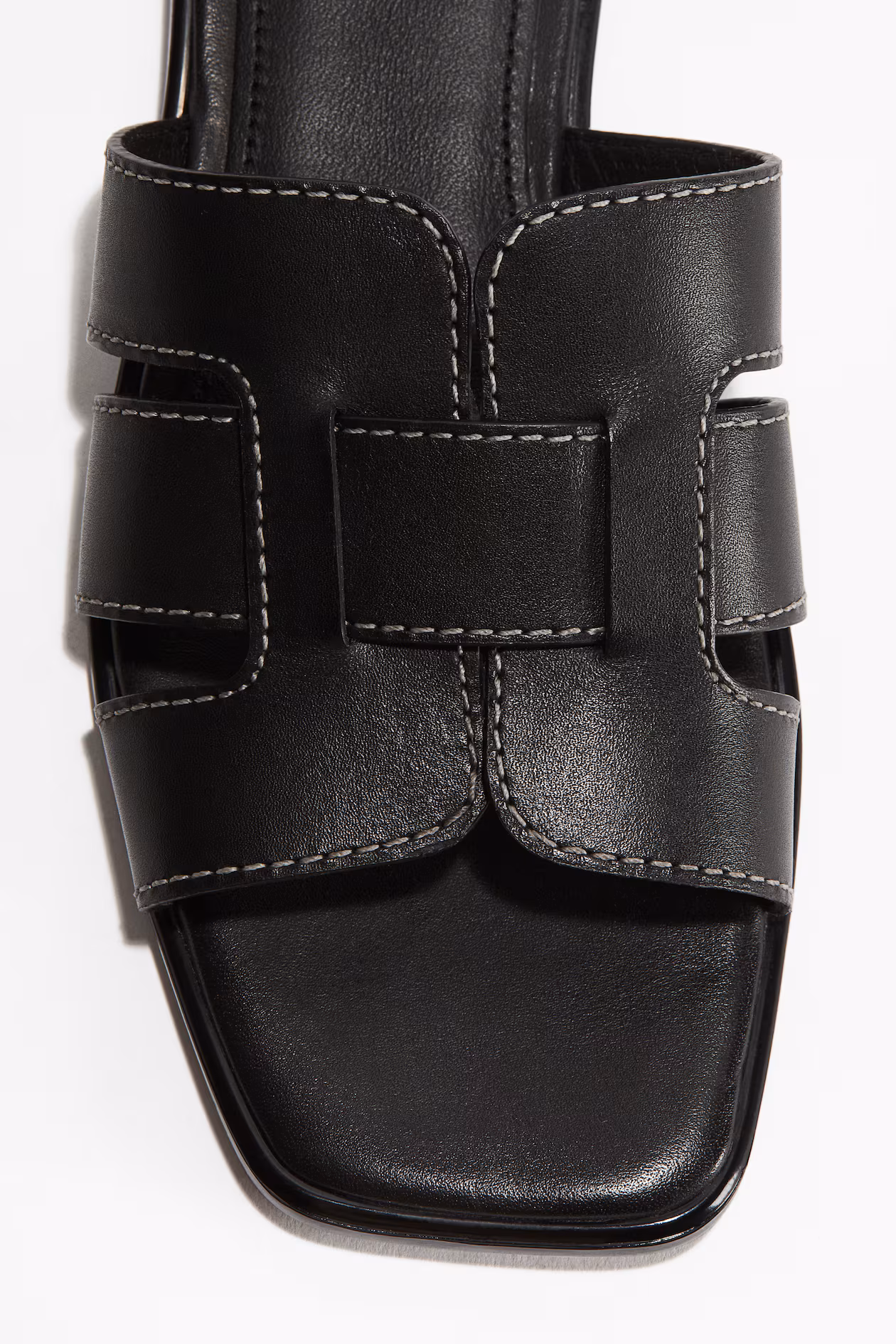 Sandals in soft leather with square toes and a wide foot strap with accent-colored seams. Leather lining and leather insoles.
